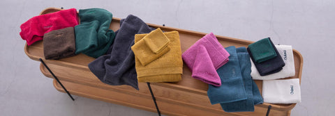 しっとりなめらかな肌ざわり、ふんわりと優しい心地よい"茶の実オイル"を練り込んだタオル