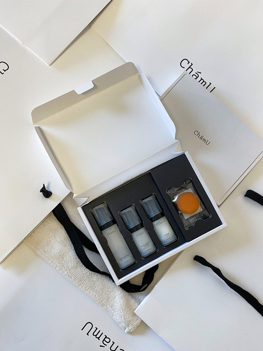 ソープ・フェイスローション・セラム・クリームの4ステップでしっとりとしたやわらかな肌へと導きます。