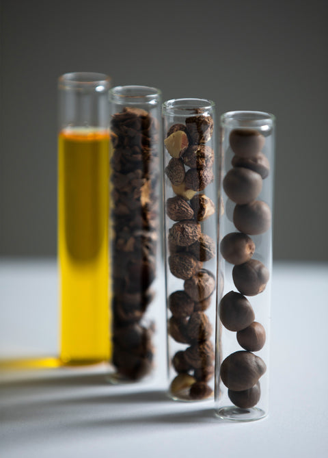 静岡県の茶畑から収穫した茶の実を乾燥させて、一粒一粒丁寧に選定し低温圧搾する貴重な「TEA SEED OIL」は、乾燥 やシワ・くすみ・たるみなどエイジングに伴う肌の悩みに効果的なオレイン酸・ビタミン E・コエンザイム Q10 といった成分が豊富に含ま れており、優れた抗酸化作用と保湿力で透明感とハリのある肌へと導きます。