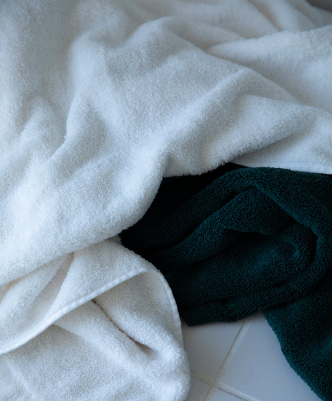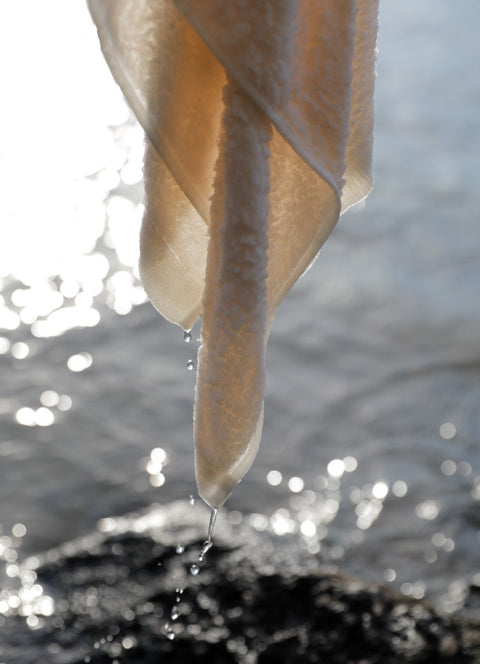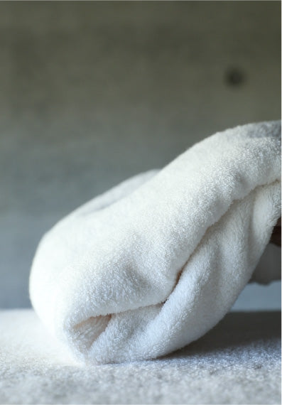 また、吸水スピードの速いコットンを混ぜた長いパイル部分は立ち上がりのあるパイルにより、肌に軽く当てるだけでスッと吸水してくれ