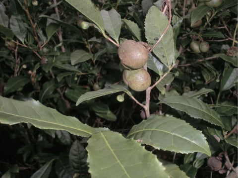 茶葉を収穫した後に咲くお茶の花、さらにそのあとに収穫できるお茶の実は、茶葉を収穫し終わった時に刈り取られてしまうことが多く、今まで有効活用できない資源として扱われていました。